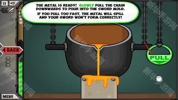 这款游戏的玩法非常有趣,玩家将不再是勇士的角色,而是铁匠,队伍的胜利全看玩家锻造的武器决定,你使用的矿石越好,武器的攻击率越高,还需要考虑属性克制的问题,非常有趣。