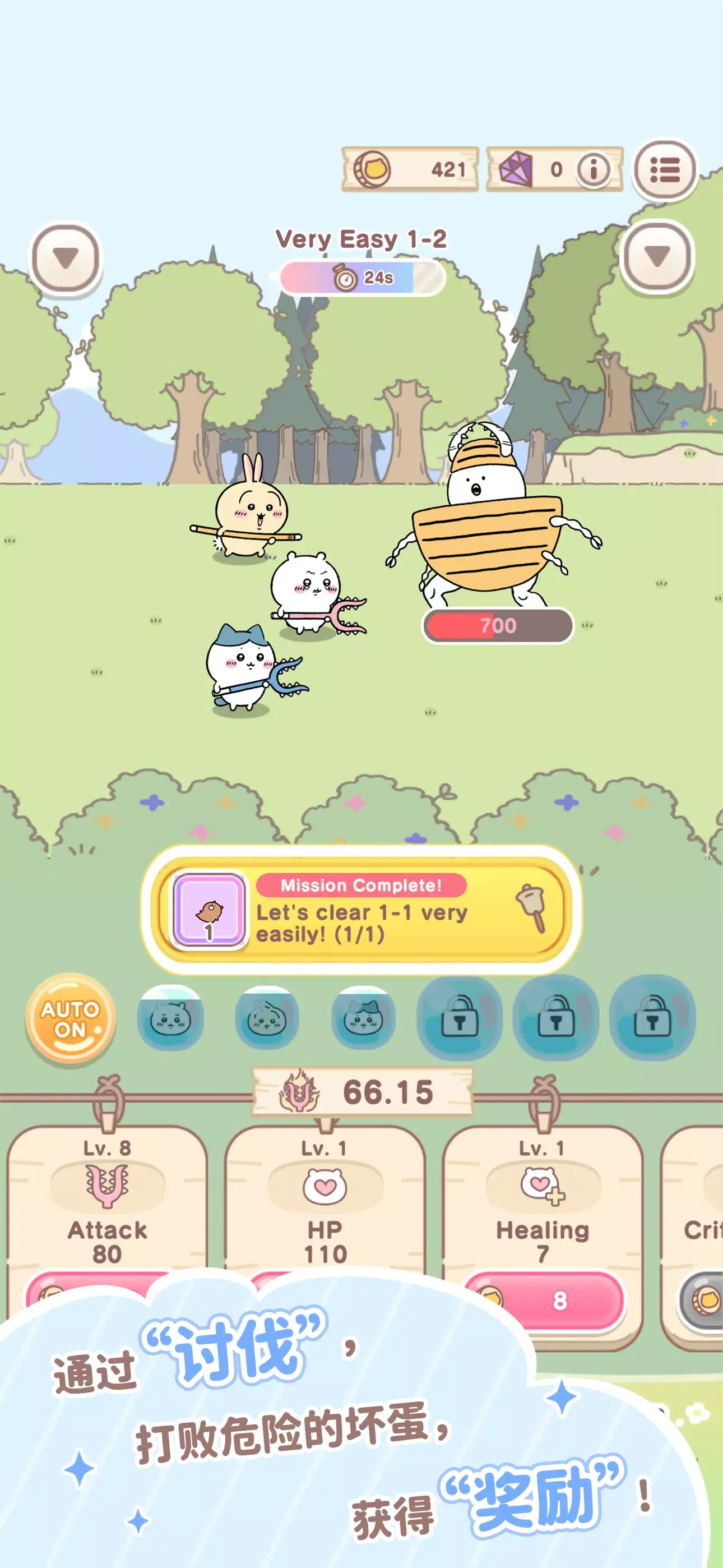 Chiikawa Pocket国际服是一款十分好玩的模拟经营冒险游戏,是根据同名漫画改编的休闲模拟手机游戏,玩家可以在游戏中与可爱动漫角色一起冒险,可以制作不同的美食和装备,能够与不同的角色自由组队,探索冒险。