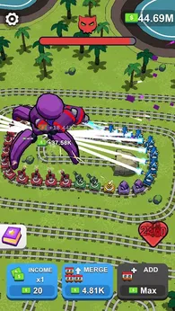 3、每一关的任务是让火车安全到达终点,但随着关卡推进,敌人会越来越强,玩家需要不断优化车厢配置,提升火力。