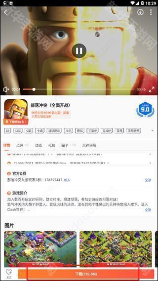 2、支持直接输入游戏名称进行快速搜索,点击进入后可查看游戏介绍、评分、点评、礼包等内容,点击下方下载按钮即可进行下载;