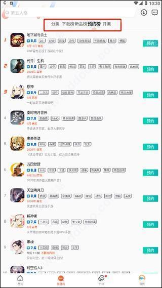5、“找游戏”中提供下载榜、新品榜、预约榜、开测等内容;