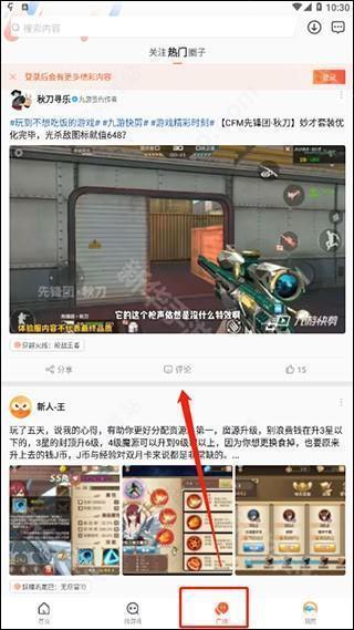 6、“广场”是玩家们的交流场所,可查看自己关注的内容,也能浏览热门内容和游戏帖子,内容丰富多样。