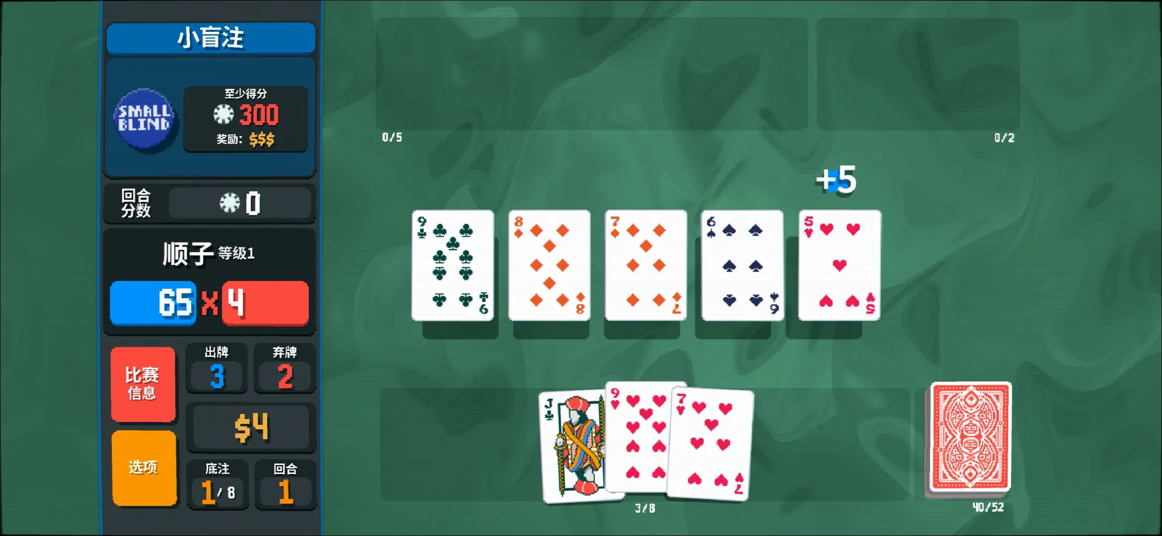 3、自由的去组合自己的卡组,用丰富多样的小丑牌、塔罗牌或者星球牌进行强化,无止境的挑战下去。