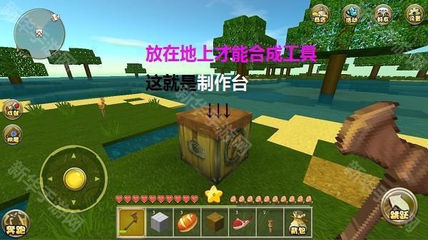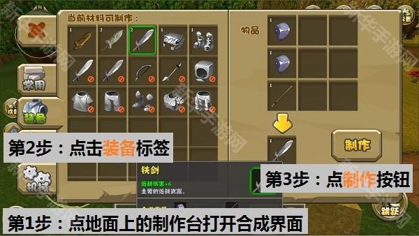 制作台在地上,再点制作台才能打开制作界面,才能合成道具