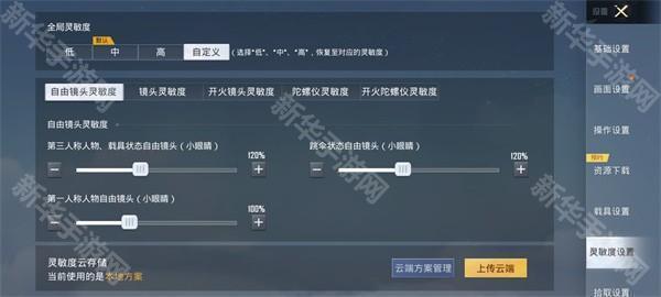 2、自由镜头的灵敏度:第三人称人物、载具状态自由镜头(小眼睛):120%;跳伞状态自由镜头(小眼睛):120%;第一人称人物自由镜头(小眼睛):100%