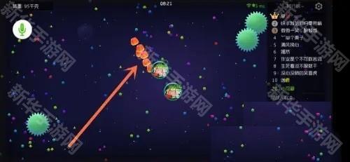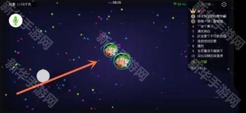 1、进入游戏后快速吃发育成大球状态,之后分成两小球