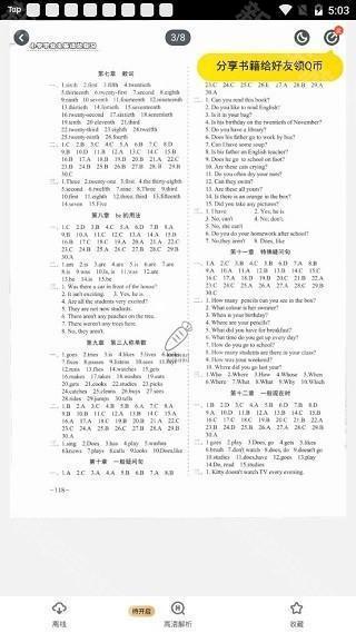 2、只需扫描教材或练习册上的条形码,即可快速查看整本作业的详细解析。