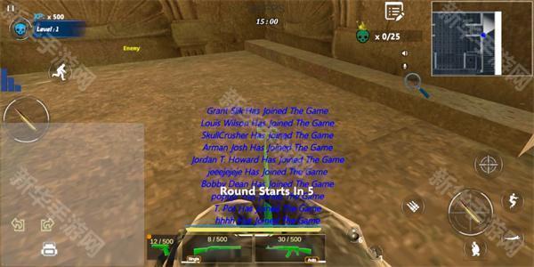 5、玩家可以利用虚拟键盘控制角色移动,右下方的按键可以进行射击、换弹、半蹲、趴下等多种功能;