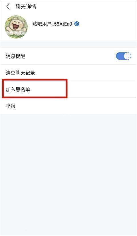 注意:加入黑名单后,对方将不能和你聊天,你也无法收到他发来的消息了。