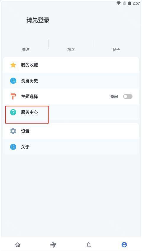 1、打开app之后,切换到我的界面中,点击上方的服务中心进入到功能界面。