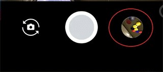 3、进入相机后是黑屏状态,点击左下角的切换到前置摄像头,切换后点击左上角的三。