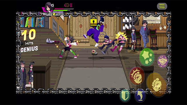 1、游戏延续了《热血》系列标志性的16位像素画风,同时通过现代技术优化,呈现出更细腻的角色动作、场景细节和光影效果,既保留了怀旧感,又提升了视觉体验;