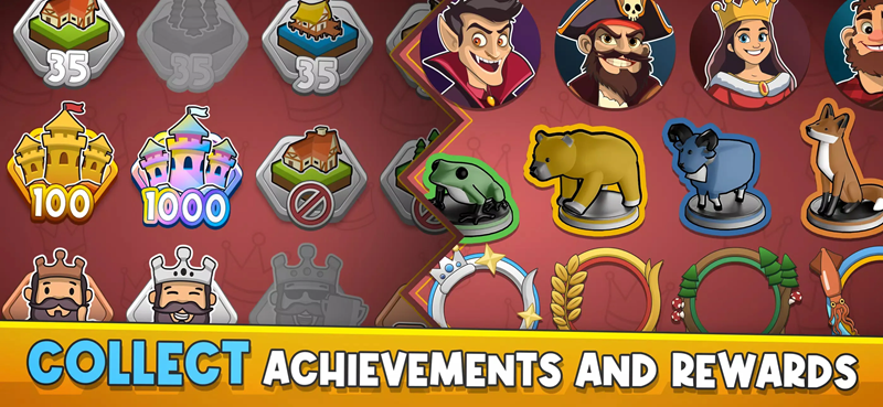 多米诺王国是一款通过巧妙地放置多米诺骨牌式的图块来扩展你的王国,每个图块都有独特的地形,帮助你得高分、打败对手。经典的1-4人回合制游戏,多种不同规模和玩法变化的王国等你来探索。匹配并连接这些地形图块,扩大你的领土。通过创建大片相互连通的区域来获得积分。独特的多米诺骨牌式图块放置方式,为玩家带来了身临其境的王国建设体验。玩家需要战略性地放置每个具有独特地形的图块,巧妙匹配和连接它们,以便最大化得分并战胜对手。