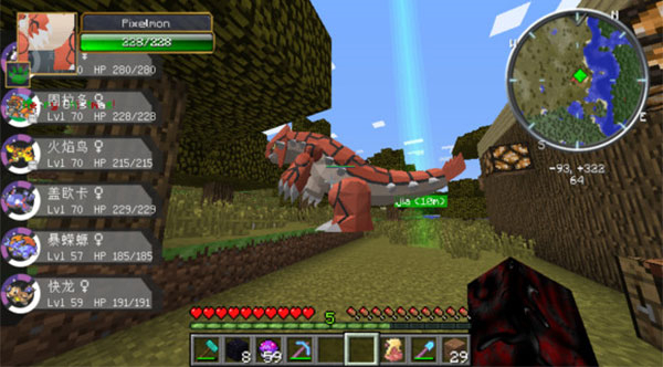 【我的世界神奇宝贝手机版】这是一款沙盒冒险类型的游戏,游戏将我的世界和宝可梦结合在一起,玩家能在这个自由的世界中寻找各种属性的宝可梦,甚至能遇见神兽。使用树果制作的精灵球对它们进行捕捉,并且和其他的宝可梦战斗,探索随机生成的世界,创造令人惊叹的奇迹。玩家可以打造自己的家园,还能随意破坏一切,体验到宠物养成和对战的双重乐趣,快来试试看吧。