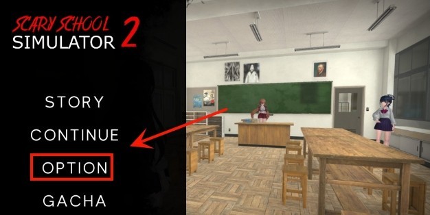1、首先本站下载恐怖学校模拟器2游戏,打开游戏进入主界面,点击左方的option;