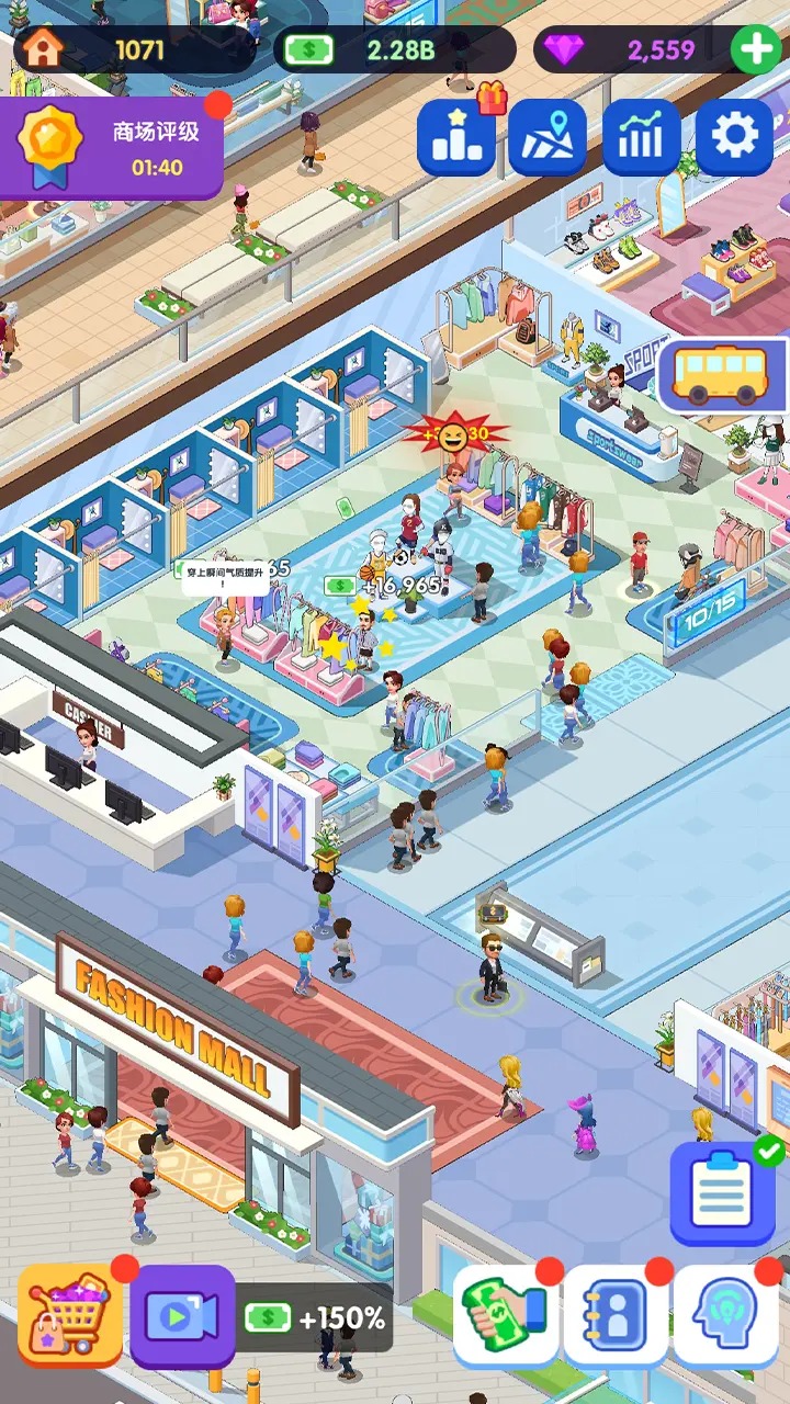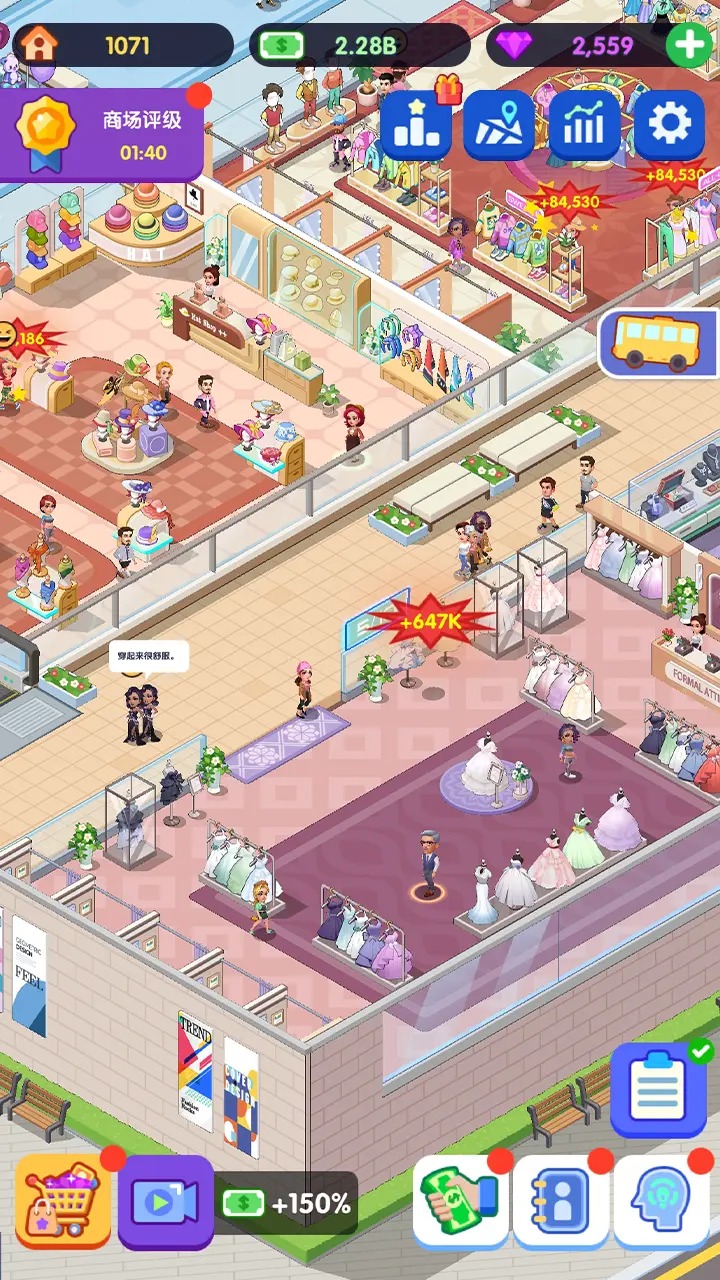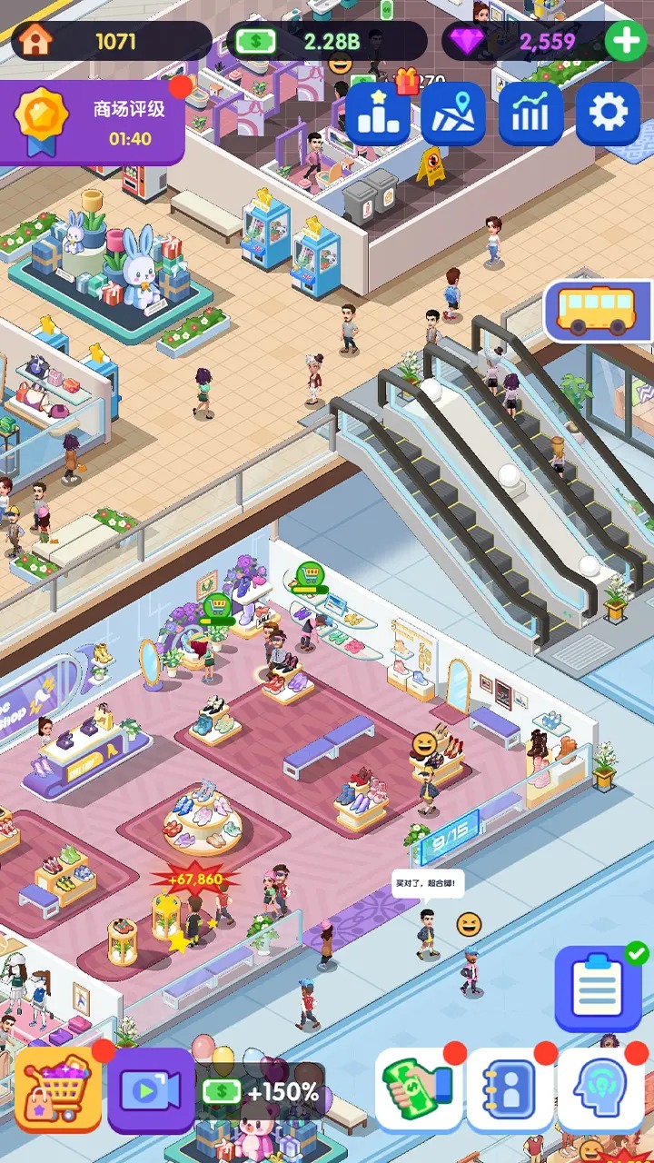 闲置商业街是一款卡通画风的模拟经营类手游,成为老板经营各类高端时尚店铺,设计别具一格的购物体验,吸引众多时尚爱好者前来。在闲置商业街这款游戏里,你要经营一家超大型商场,有超过32家店铺等着你去管理,你得招募店铺经理,培养导购员,从零开始,在城市黄金地段打造一条满是时尚氛围的商业街。