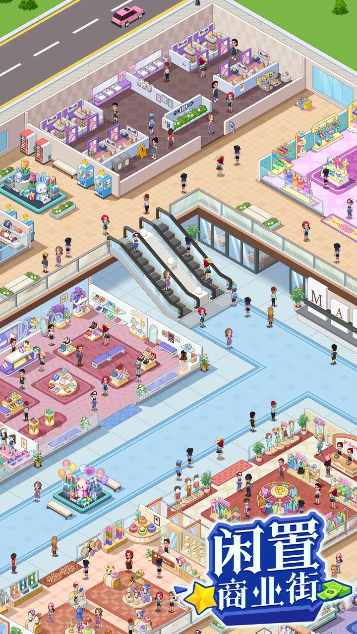 1、在游戏《闲置商业街》中,你将扮演一家超大型商场的经营者,带领玩家迈向城市时尚之巅;
