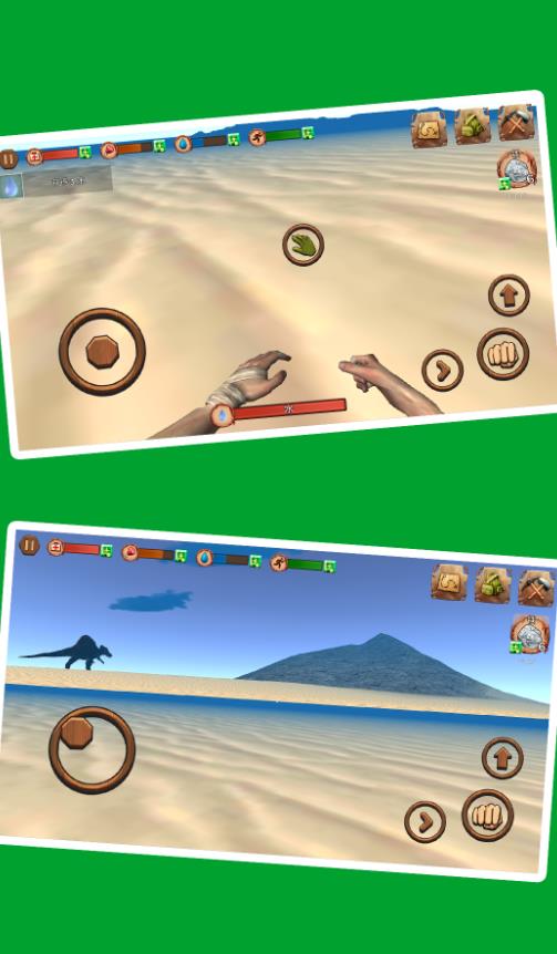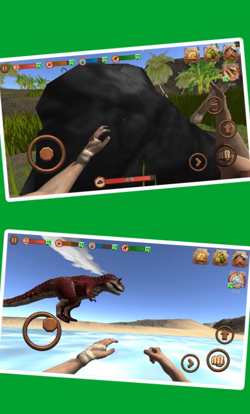 一款生存冒险类游戏,玩家将会来到一个小岛上进行生存,岛上有着许多的恐龙,玩家需要根据恐龙们的习性来进行战斗,在前期,玩家的资源非常非常少,所有首要任务就要在地图当中收集各种资源,强化自己的生存实力,在拥有了足够的装备以后,玩家就可以与恐龙进行硬钢,将恐龙打败可以获得大量的食物,让角色可以饱腹非常长的一段时间。