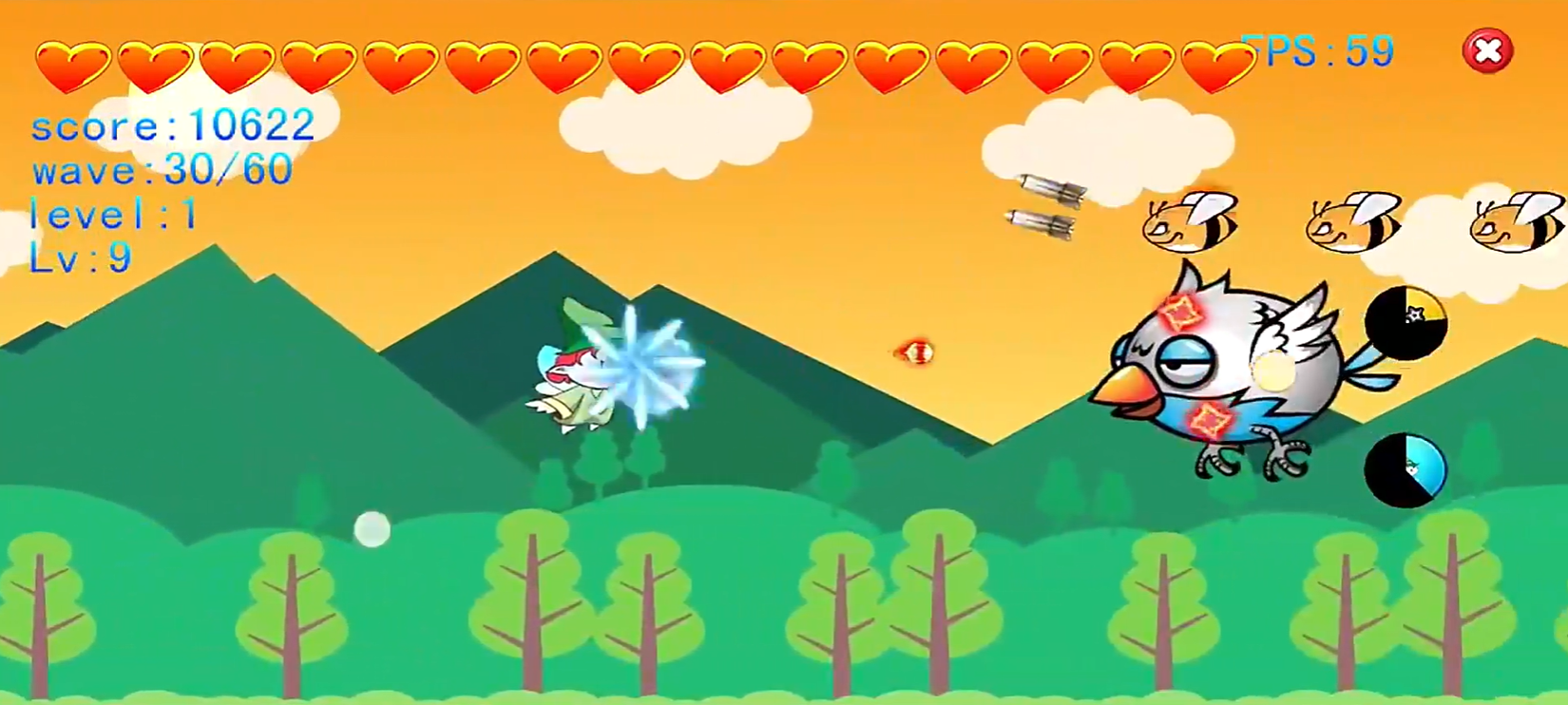 1、我们在游戏过程中可以操控飞鸟,360°自由飞行躲避弹幕,点击射击结合蓄力攻击击败敌人;