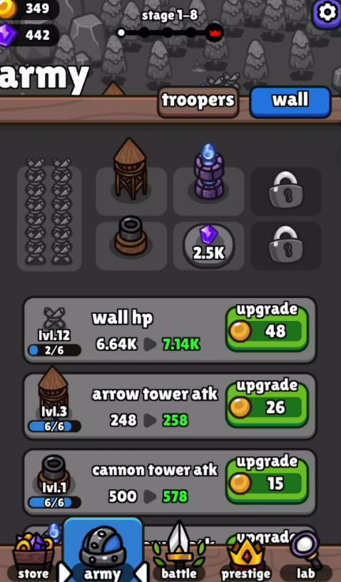 1、钢铁之墙采用自动战斗与离线收益机制,适合碎片化时间游玩,轻松又上瘾;