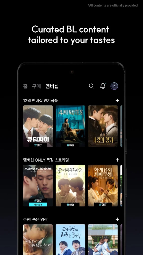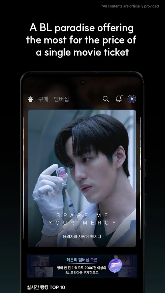 《heavenly》是一款立志于收集和制作bl相关视频和短剧的韩国软件,Heavenly还支持多种社交账号登录方式,可以使用Kakao、Google和Email等方式登录,在此软件中,用户将体验到前所未有的bl视觉盛宴,海内外上万位帅哥型男演员,成熟的剧本编辑,而且本软件还提供了多种清晰度从2k到480p的清晰度可以自由调节,在网络不好的情况下也能任意观看,喜欢bl的小伙伴们千万不要错过了哦!