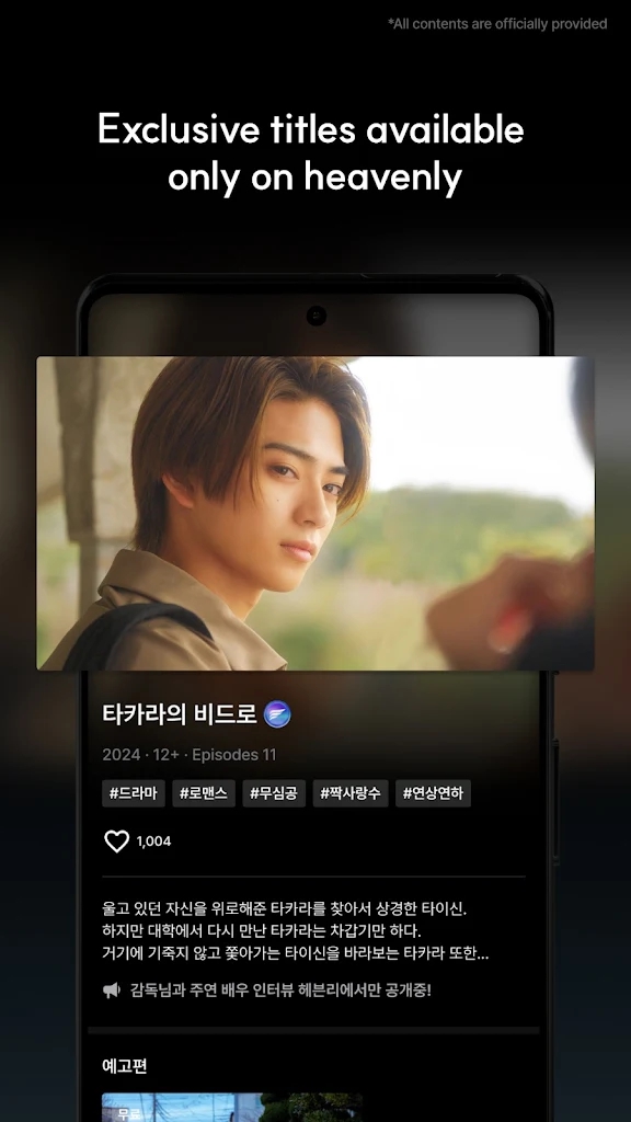 Heavenly汇聚泰国、韩国、日本、中国台湾等地区的BL剧集,涵盖泰剧大胆激烈的情感冲突、韩剧精心制作的浪漫情节、日剧细腻感人的故事表达,以及台剧新鲜心动的甜蜜桥段。每日更新热门剧集,同步海外平台播出进度,让你第一时间追剧。