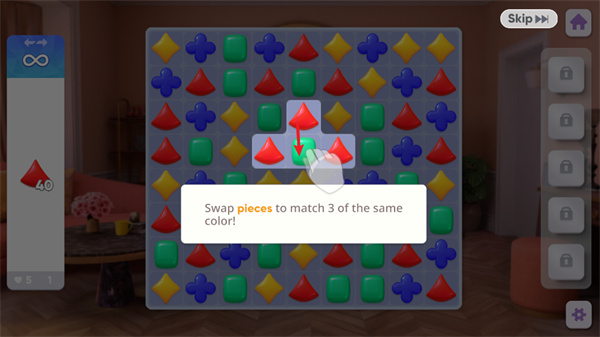 2、玩家需要通过匹配相同的物品来清除屏幕上的障碍,完成任务目标。这种简单而吸引人的玩法非常适合休闲娱乐。