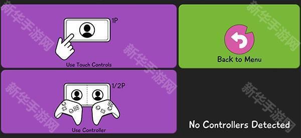 2、左侧紫色区域选择按钮控制方式,使用触屏还是游戏手柄操纵,手柄需要和好友组队联机才能体验。