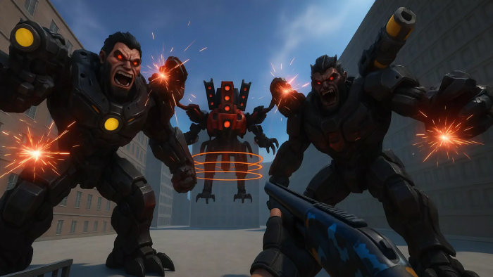 【Meme模因游乐场】这是一款沙盒射击类型的游戏,这款游戏结合了网络上最有名的模因meme,比如木棍人、猫咪蓝精灵、马桶人等等,这些怪物看起来都非常的搞笑,玩家需要探索游乐场的每一个区域,并且消灭这些游乐场里的怪物,消灭搞怪的meme,获得游戏的胜利。在另一个创造模式中,而且玩家只需要打开菜单,就能在地图上放置怪物,然后让你可以随意消灭他们。