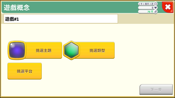3、这样一来就能够开始游戏开发操作了,我们需要根据自己的想法挑选主题、类型、平台。