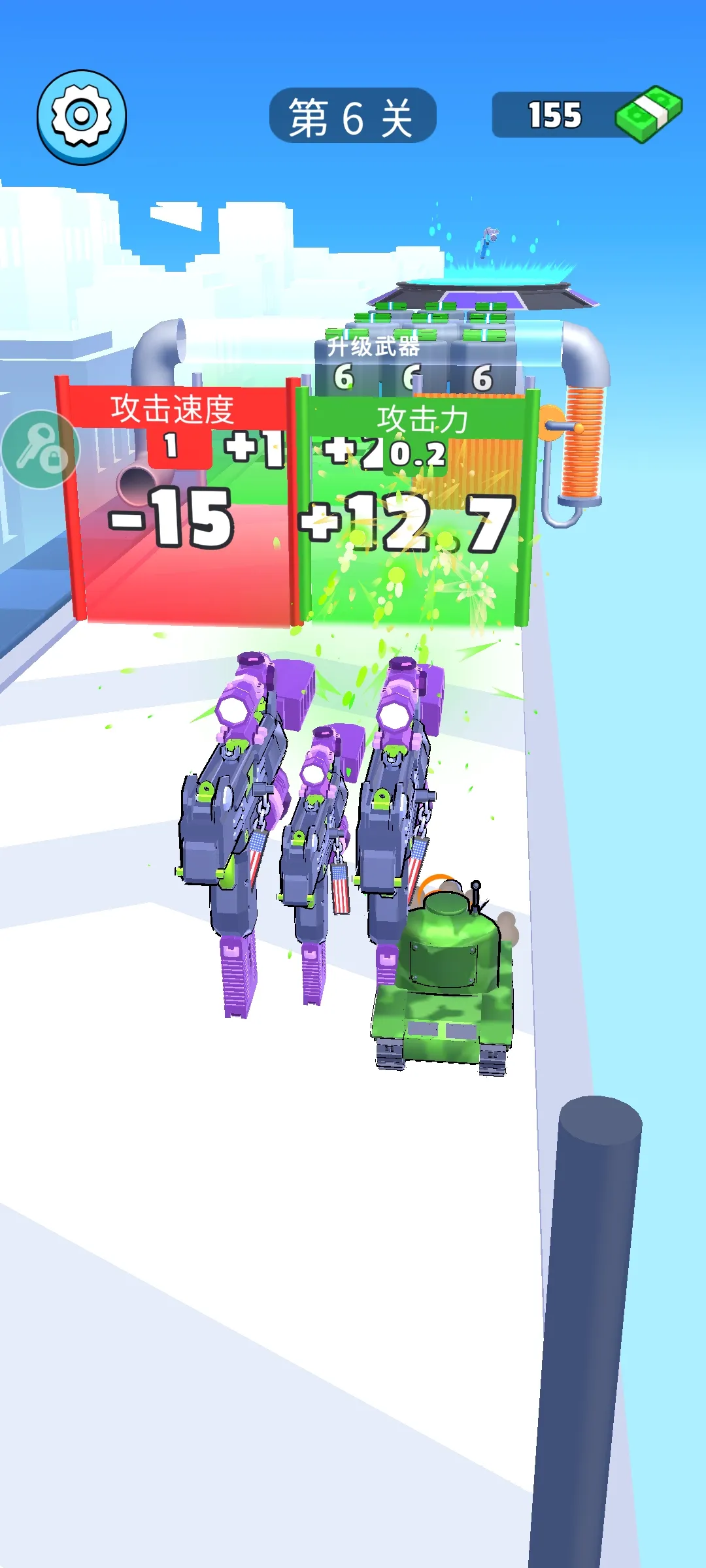 2、丰富多样的枪械和道具满足玩家的收集和升级需求,赛道上有各种道具和枪械供玩家选择;