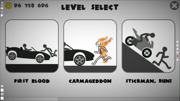 游戏的玩法非常的有趣,让压力大的玩家能够快乐的解压,并且根据火柴人的受伤程度获取金币,解锁更多不同的物品,将火柴人破坏的越多,你得到的分数也就越多。