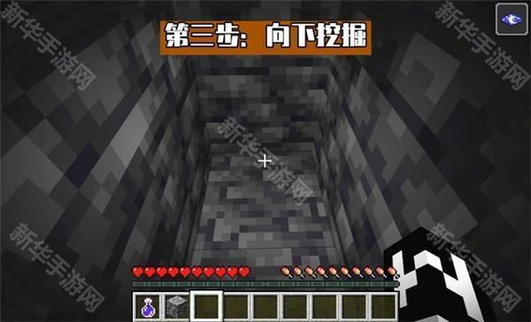 3、我们尝试下沉到Y=-10层,依然没有任何发现,所以我们直接挖到-51层;