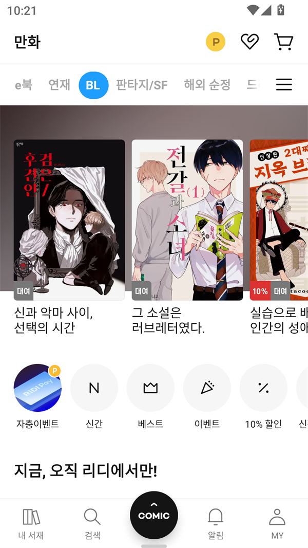 《ridibooks韩文官方版》此软件是一款在韩国非常受欢迎的漫画小说阅读app,在此软件中包含了超多韩国正版漫画,以及官方正版小说,在此软件里不仅包含了爱情漫画、都市漫画、悬疑灵异、日常漫画、幻想漫画、古风漫画等等,还有都市,言情,耽美等等风格的小说,此软件包含强大的功能,用户不仅能看到自己想看的小说,还能自定义观看的方式,无论是下拉,翻页,还是滚动,本软件都可以自行设置。