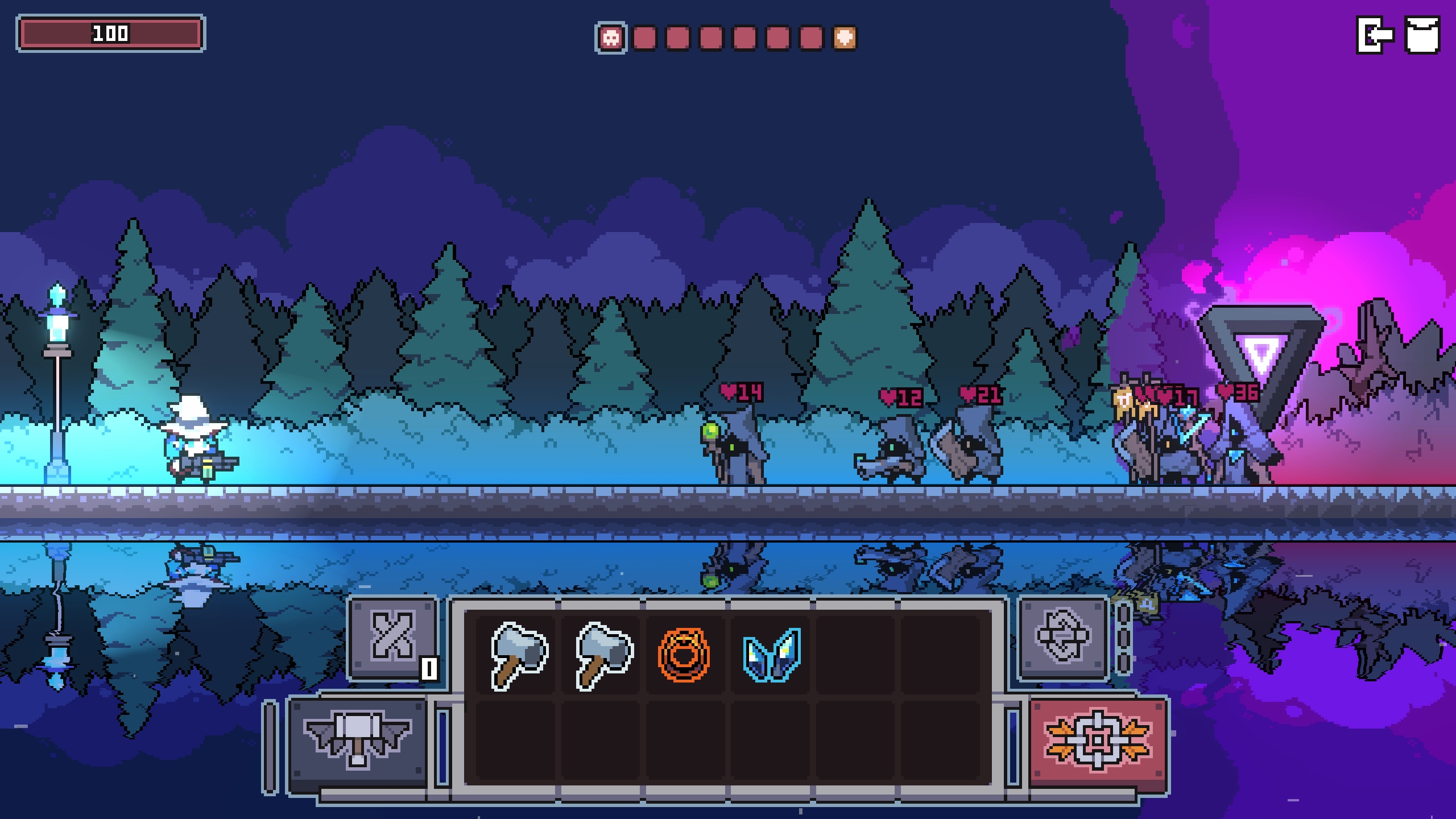 这款游戏的玩法非常不错,我们可以拿着各种炫酷的武器对敌人进行扫射。这里还有这一些随机的故事时间,作为一个关卡供玩家闯关,每次战斗开始玩家都可以提前看到boss状态属性,每轮次结束后,根据当下的情况选择最合适的流派增益!