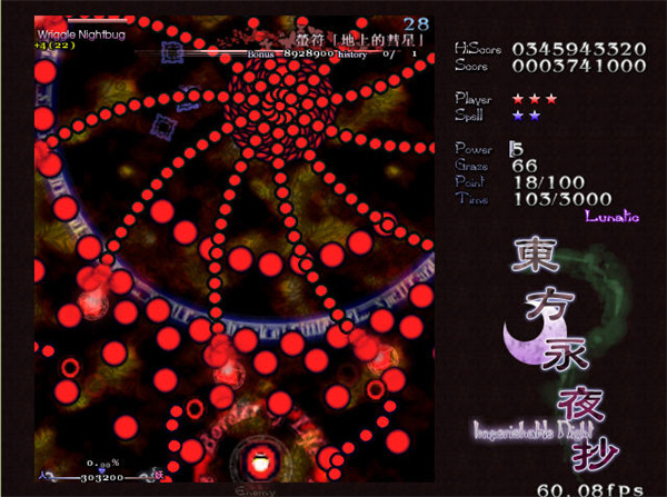 【东方永夜抄手机版】是一款以东方为创作题材的弹幕射击类游戏,该游戏背景发生在正当夏季要过去的时候,幻想乡又再一次发生异变,游戏采用了经典的弹幕射击玩法,在保留经典玩法和系统的基础上,增加了全新的游戏内容,使得玩起来更加富有趣味性。此外,东方系列的游戏素来以惊人的弹幕闻名,这款东方永夜抄亦不例外,其BUG级躲无可躲的满屏弹幕挑战玩家视觉与操作的极限,让玩家在不断的挑战和不厌其烦的重复操作中找到快感。