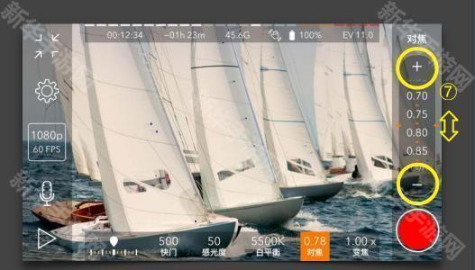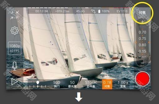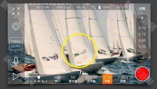 d、手动调节对焦后,对焦点将在屏幕显示,提示对焦已锁定。点击解锁图标以解除对焦锁定并切换到自动对焦模式。