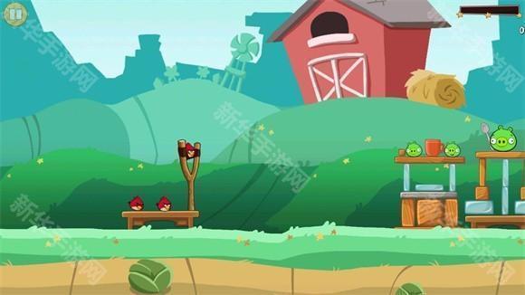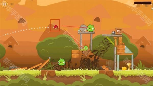 2.进入关卡后,操作与原版相同,使用弹弓发射鸟类摧毁障碍物和猪。