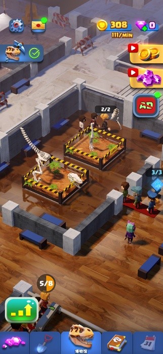 3、持续解锁全新的房间进行储藏,保证所有化石都能得到完善的保存,这样还能更好的提高知名度和人气。