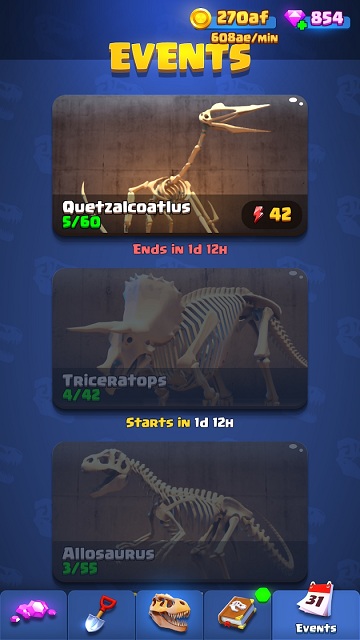 1、整体恐龙化石的类型繁多,自由采集分类摆放展览吸引更多游客,这样可以轻松赚取大量收益完成升级扩张。