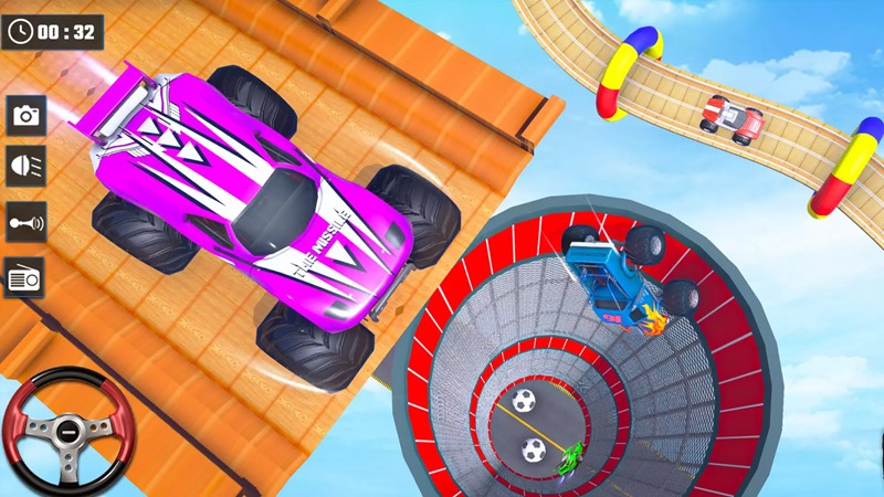 《怪物特技卡车》是一款很好玩的3D赛车游戏,这款游戏为玩家提供了丰富的赛道选择,大概有十多种不同赛道地图,包括山路、街道和越野带等多个地图,这款游戏带有真实的物理引擎,玩家驾驶汽车时能真切地感受到路面反馈,甚至于发动机的轰鸣声都带给人一种真实的感受,这里提供很多汽车的特技表演赛,玩家可以在游戏中做出很多高难度动作博取奖金。