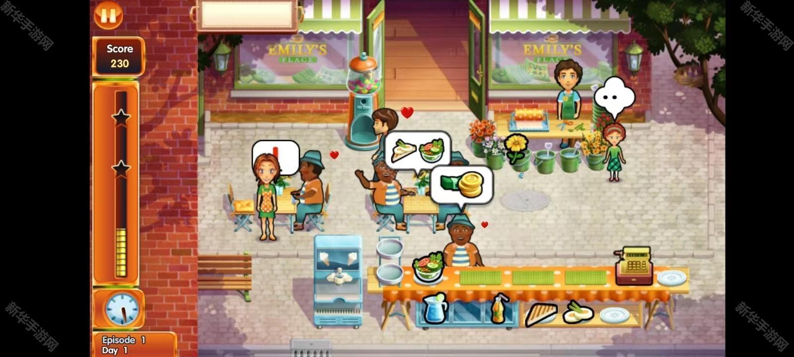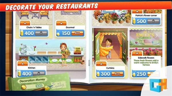 1.用赚来的钱替换桌子、椅子和装饰品,升级关卡,解锁新食物以赚取更多钱。