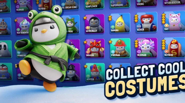 游戏的玩法非常的有趣,玩家需要不断的跳跃,奔袭,通过到达终点获得游戏的胜利,玩家在胜利之后还能获得新的服装等等,来个性化自己的企鹅,玩法非常的自由。