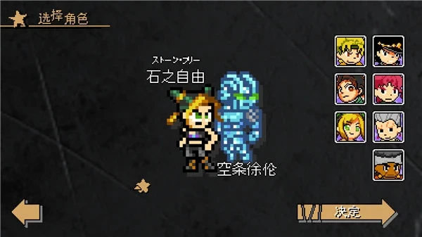 jojo的奇妙冒险x洛克人是一款超带感的像素风动作手游,在jojo的奇妙冒险x洛克人游戏中,游戏完美融合了jojo的奇妙冒险和洛克人两大经典IP,你将扮演拥有替身能力的jojo角色,在充满机械敌人的横版关卡中展开冒险。