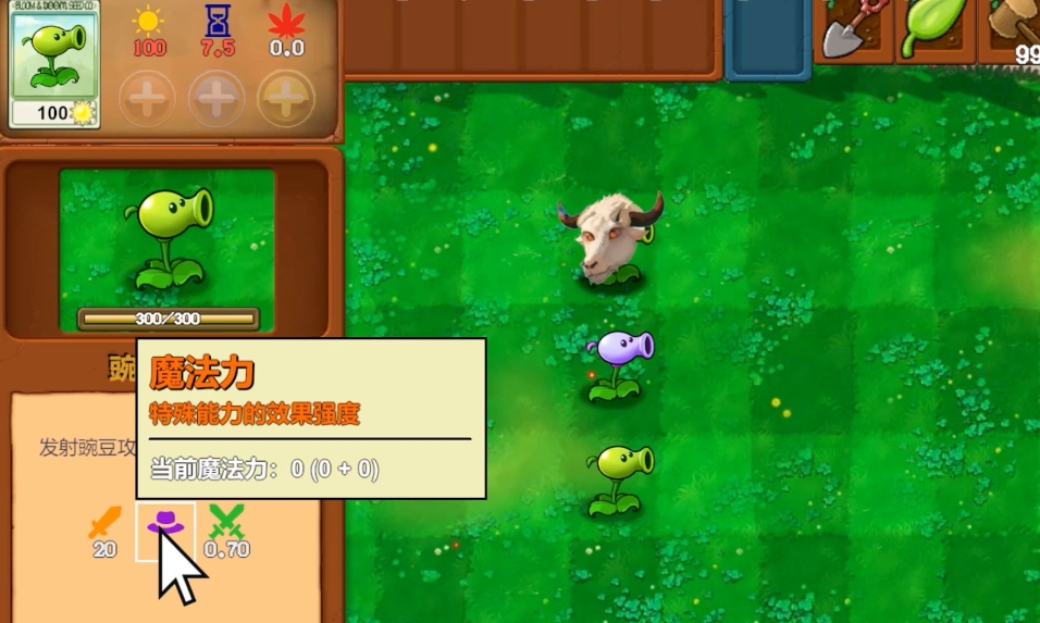 每个植物的卡槽升级效果,至少有1项受魔力影响