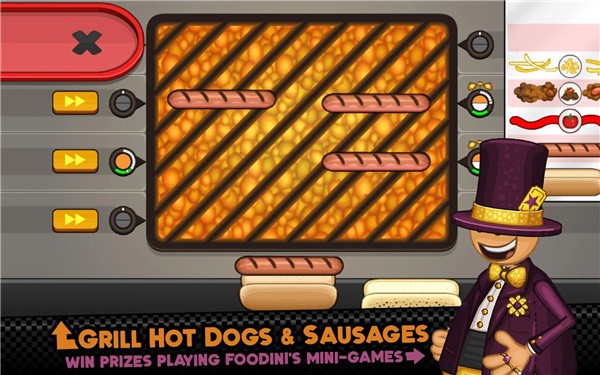 2、游戏真实还原了热狗制作的每一个过程,从挑选热狗的食材和配料开始,用心的制作和完成每一份订单。
