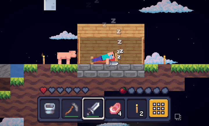 【我的世界2D天空之岛】这是一款生存冒险类型的游戏,这款游戏玩法类似mc,游戏中没有任何限制,你可以在随机生成的世界中自由探索。在这里,你需要收集各种资源来建造自己的家园,你可以不断探索岛屿,收集铁矿石、煤矿,并通过砍伐树木和合成它们来制造武器和工具。你甚至需要在晚上与怪物战斗,怪物掉落的物品可以成为你炼药的关键,快来试试看吧。