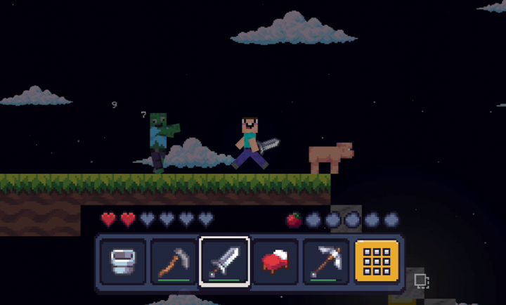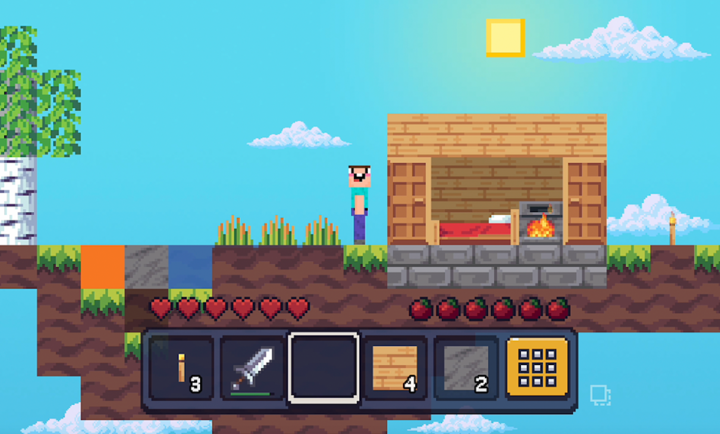 这款游戏的玩法非常的有趣,让玩家来一场横版的空岛mc冒险,缓解玩家的压力,并且可以建造各种不同的艺术作品和房子,可以自由的收集方块,并且在危险的夜晚生存下去。