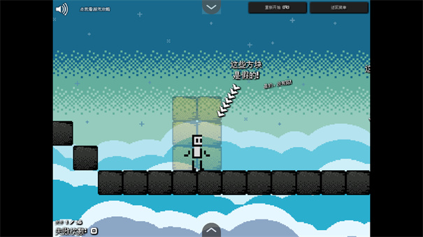 【最大的挫折2】这是一款横版动作类型的游戏,玩家需要控制小人通过重重难关,走到最后的终点,而游戏的难度会变得越来越高,游戏的难度不是很高,但玩家必须能够操作它,否则很容易翻车。游戏的关卡在后期会越来越困难,各种障碍物和怪物,玩家只有一条命,死亡的话就要从起点重新开始,一旦不小心掉下去就会让人很崩溃,让玩家捉摸有不同的通关方法,很有趣。