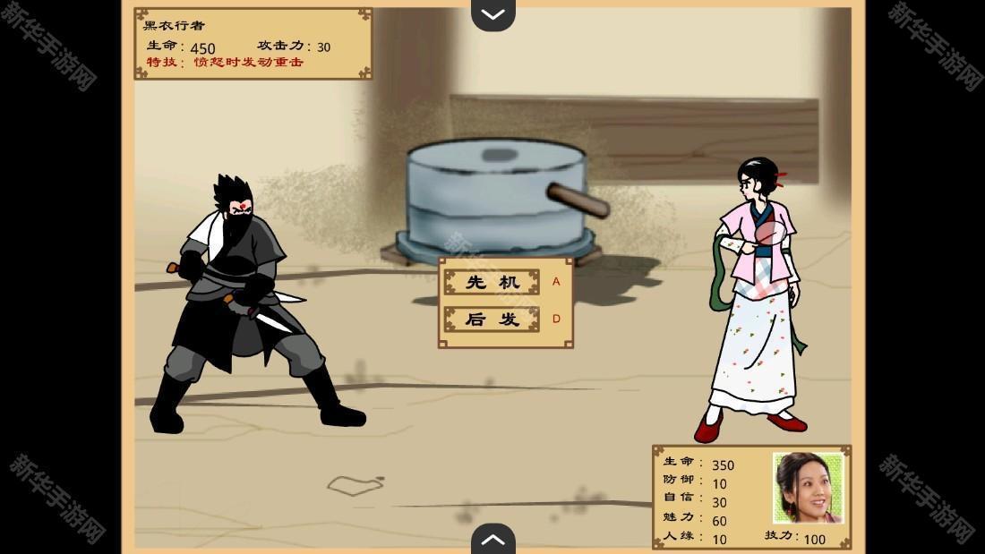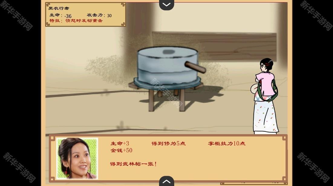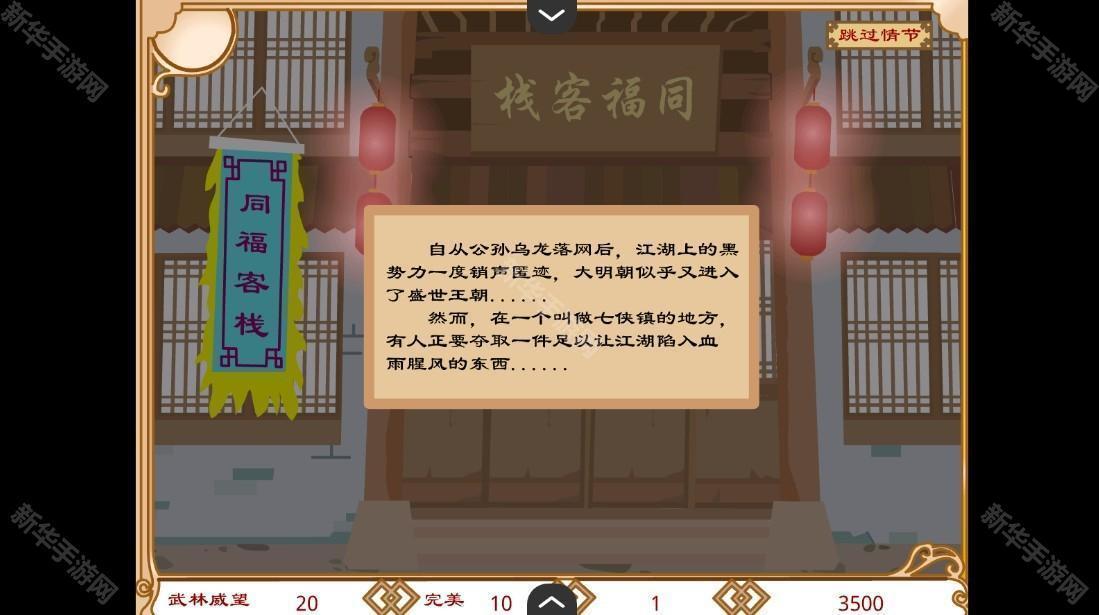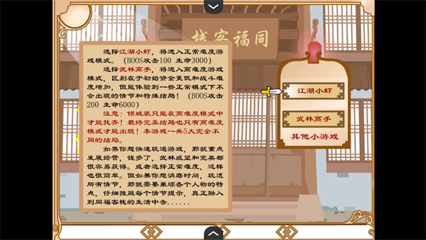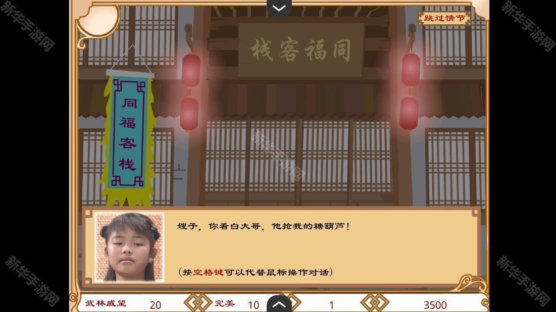 2.选择开业后,初学者推荐“江湖虾米”的难度级别,而经验丰富的玩家可以选择“武林高手”,然后通过情节对话进入战斗。